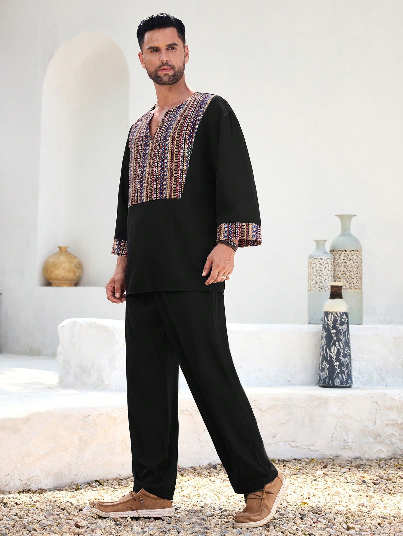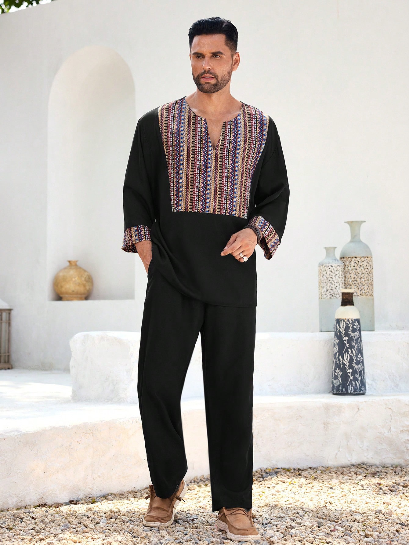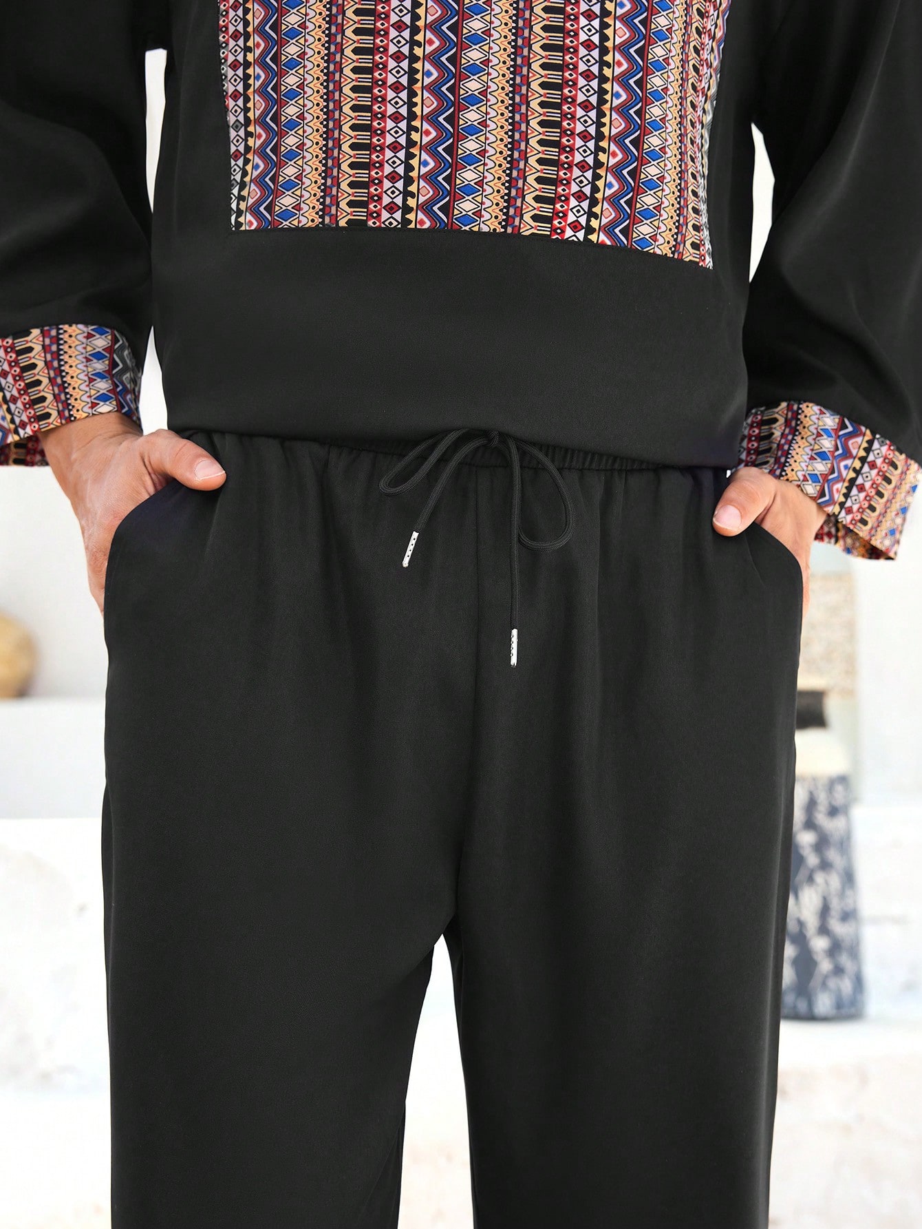 Manfinity KASUA 2pcs/Set Retro Print Long Sleeve Pullover Shirt Set