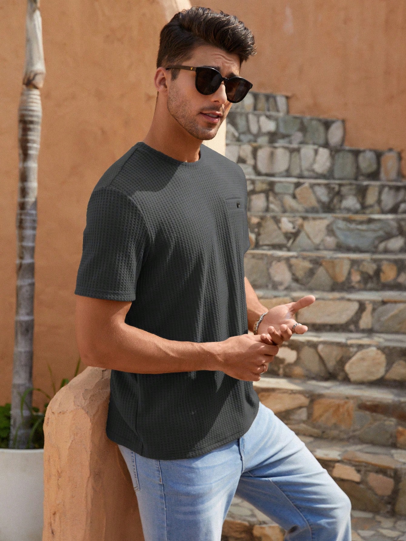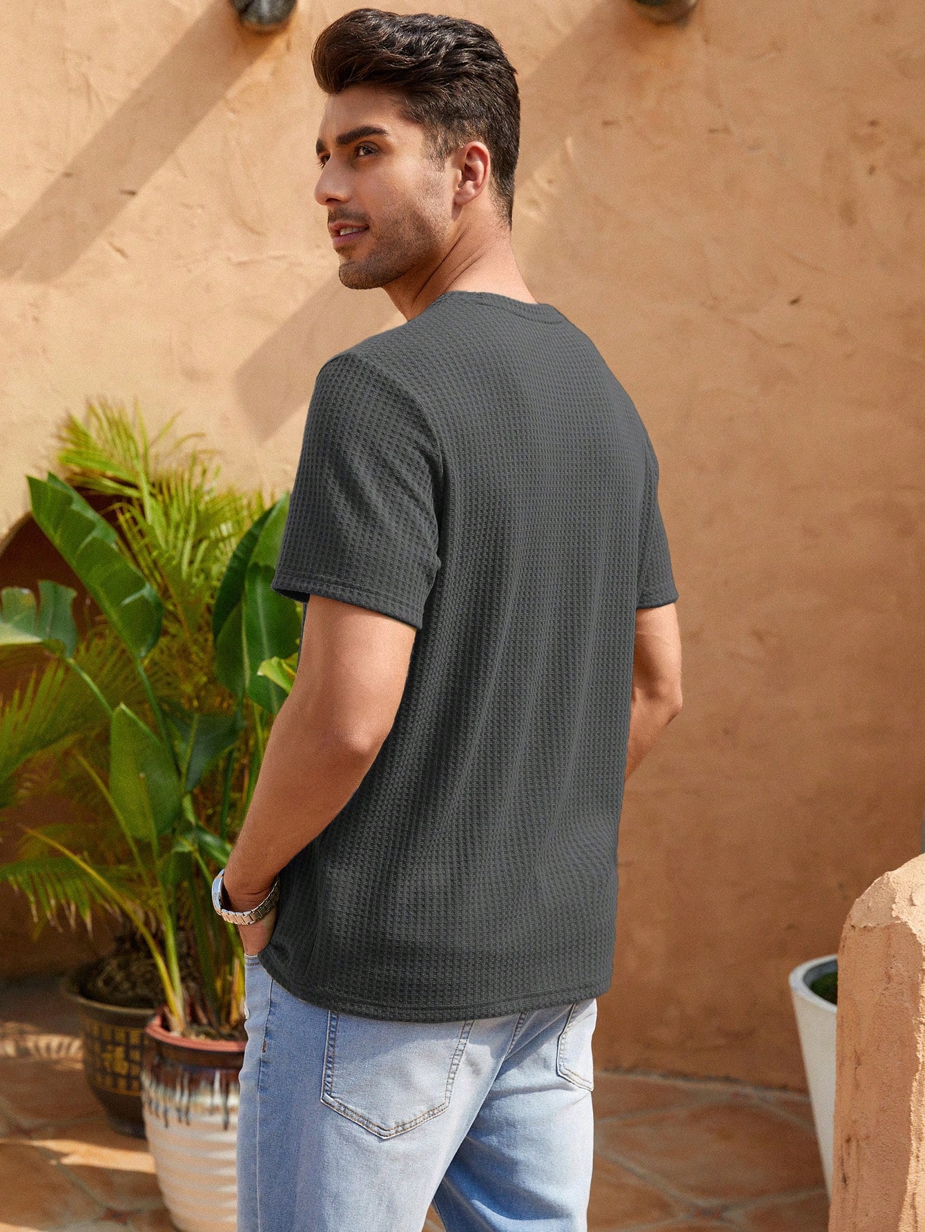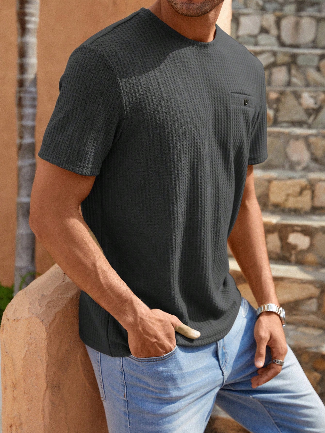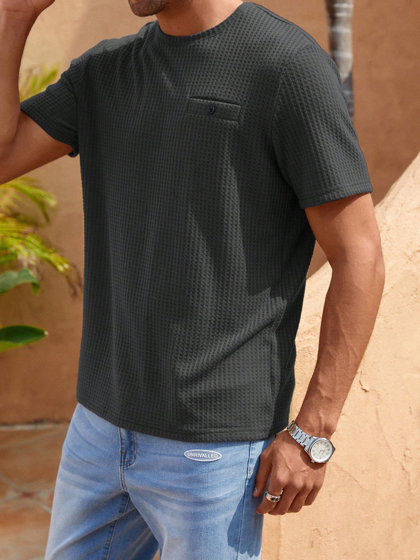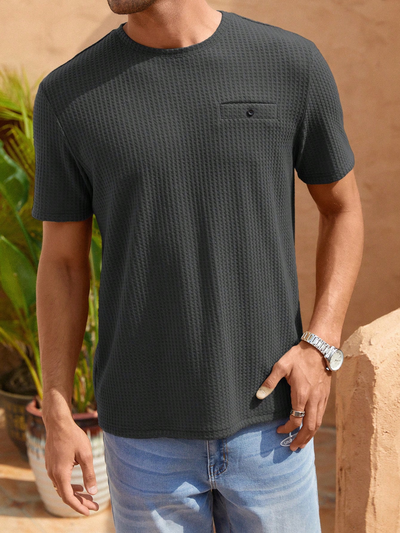 Manfinity KASUA Men Solid Waffle Knit Tee