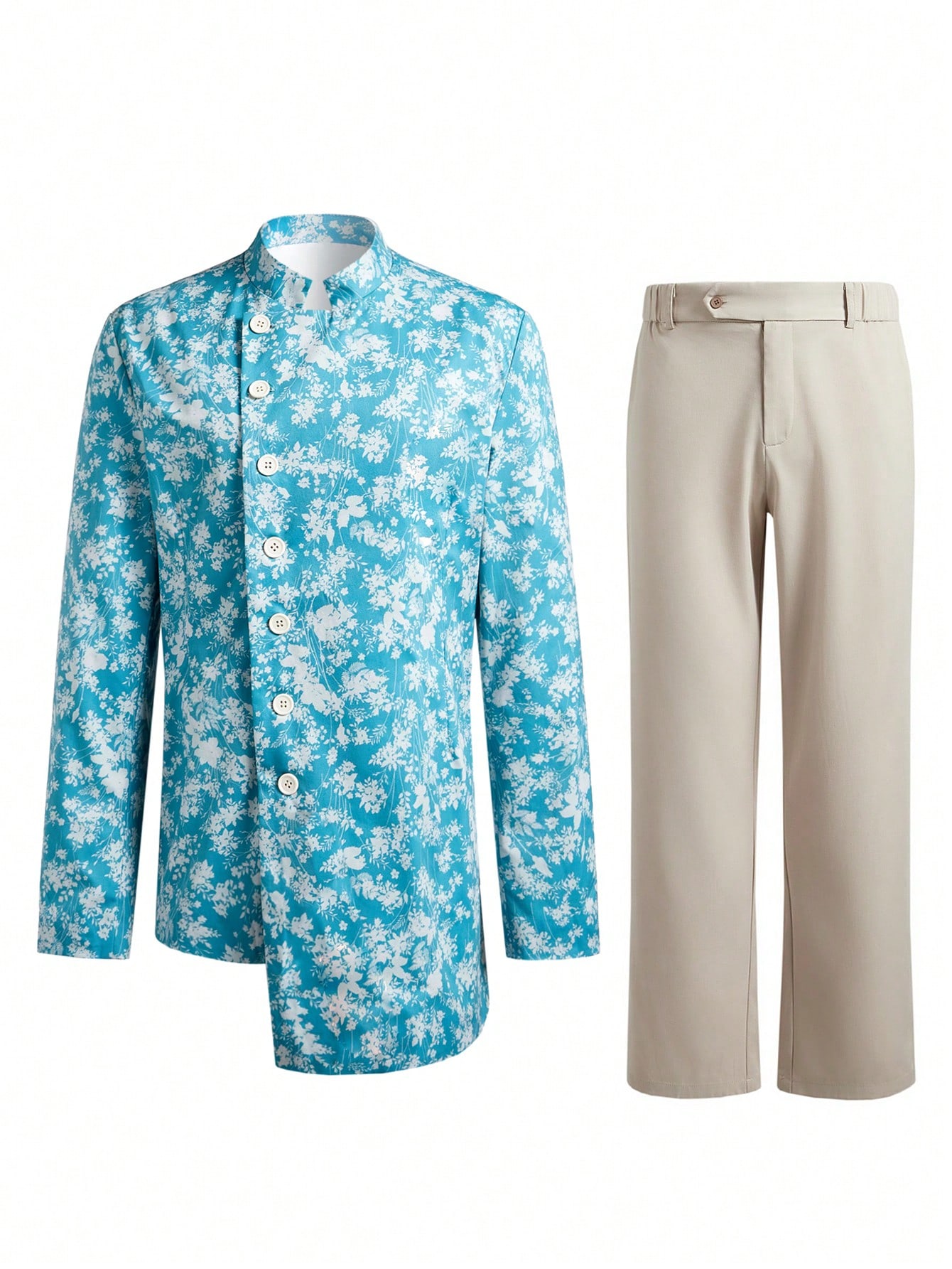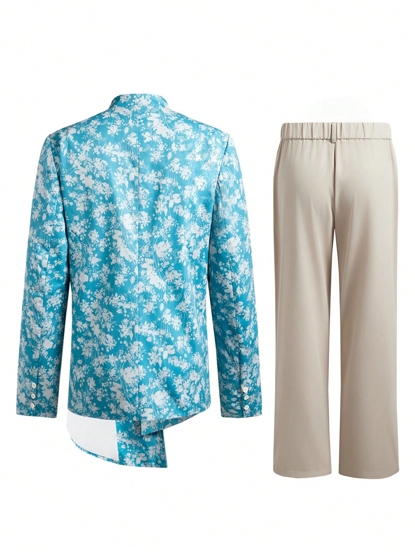 成为第一个“Manfinity KASUA Men??s Full Floral Print Asymmetrical Hem Single-Breasted Suit Jacket And Straight Leg Pants Set” 的评价者