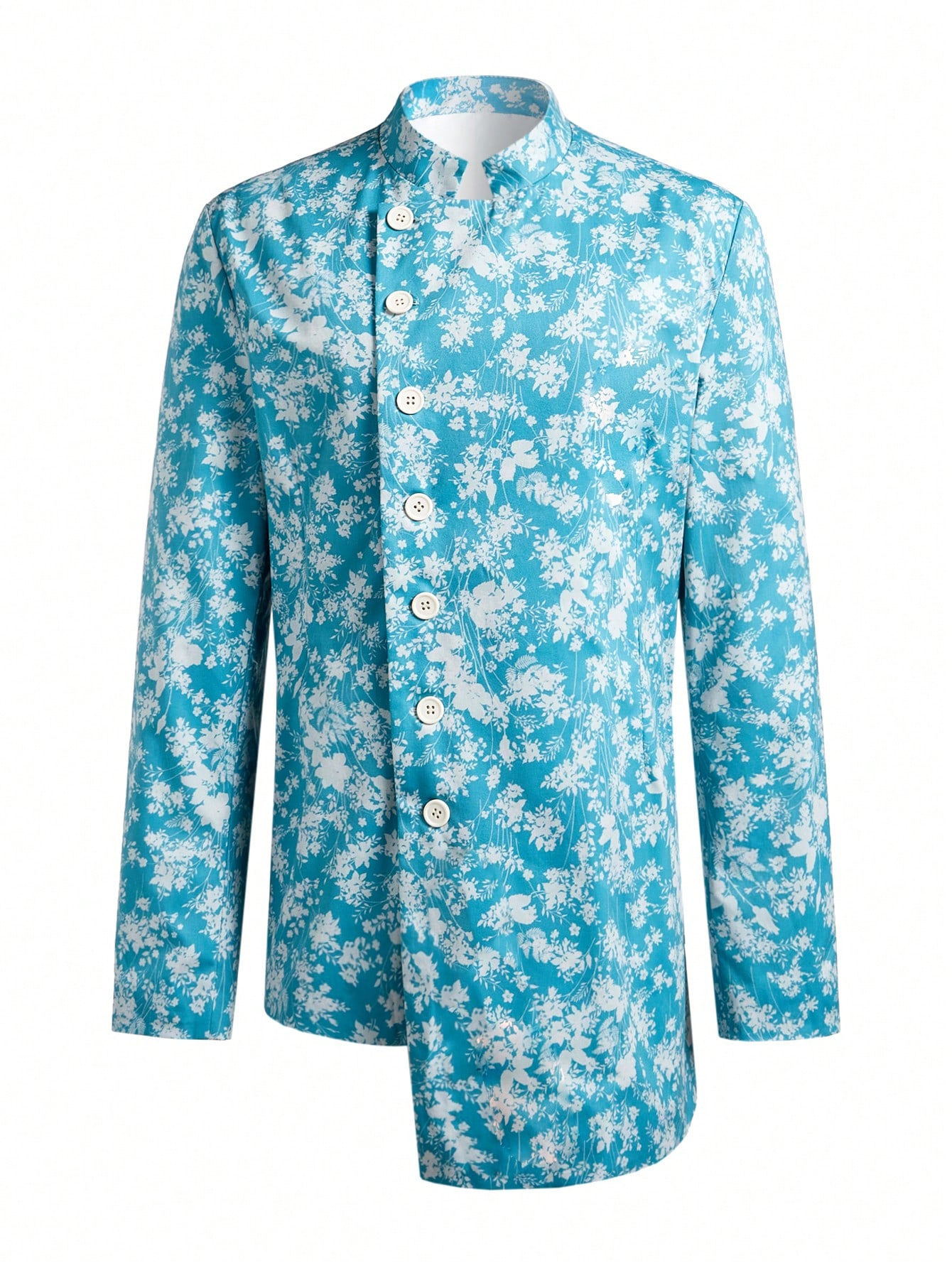 Manfinity KASUA Men??s Full Floral Print Asymmetrical Hem Single-Breasted Suit Jacket And Straight Leg Pants Set