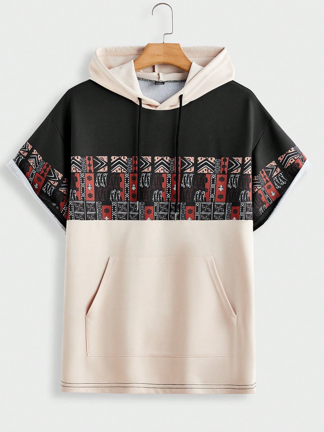 Manfinity KASUA Men??s Short Sleeve HoodedPatchwork Sweatshirt