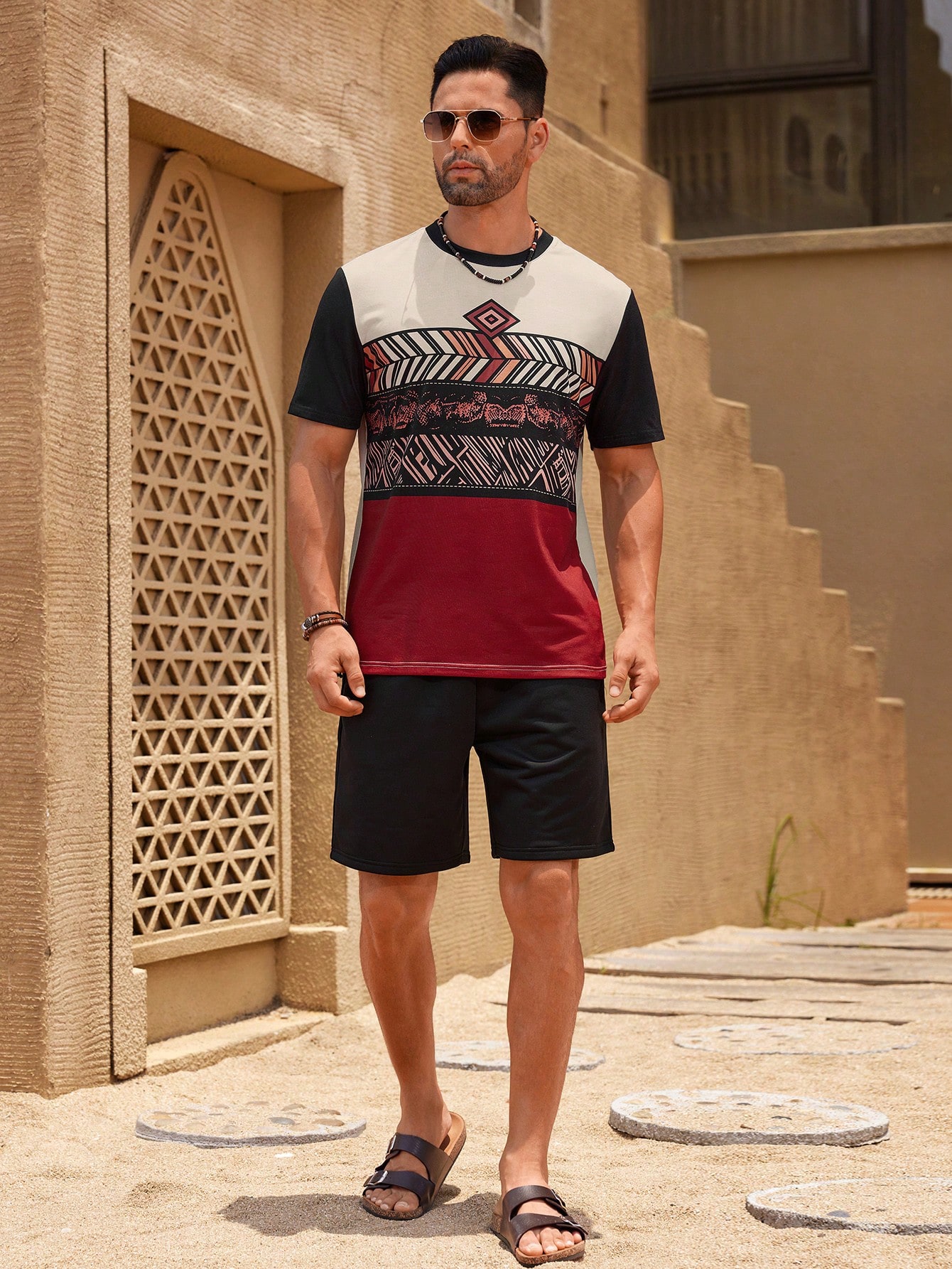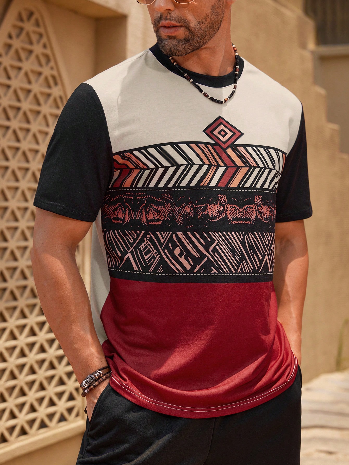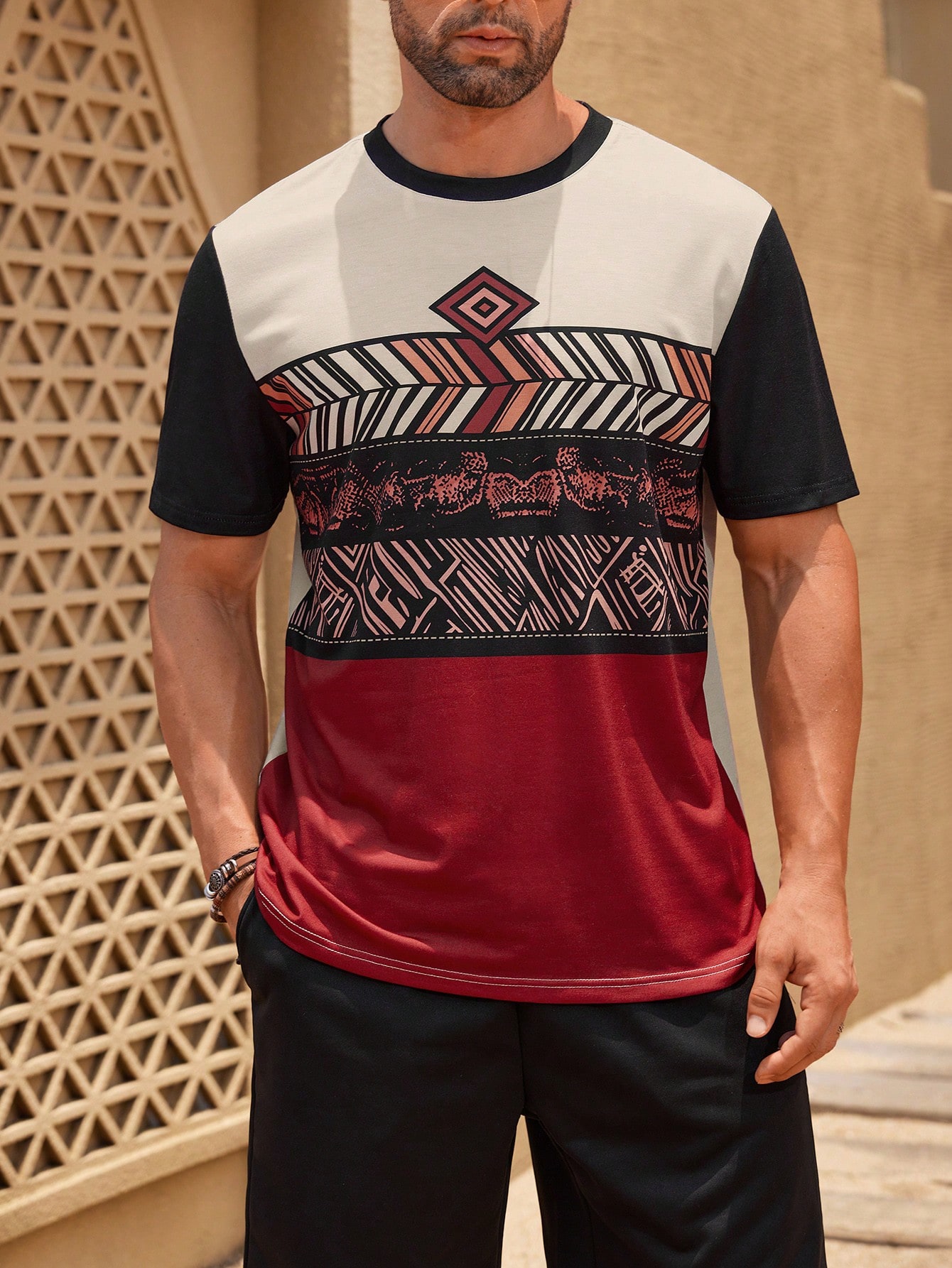 成为第一个“Manfinity KASUA Men??s Short Sleeve Round Neck Tee With Geometric Print, Summer” 的评价者