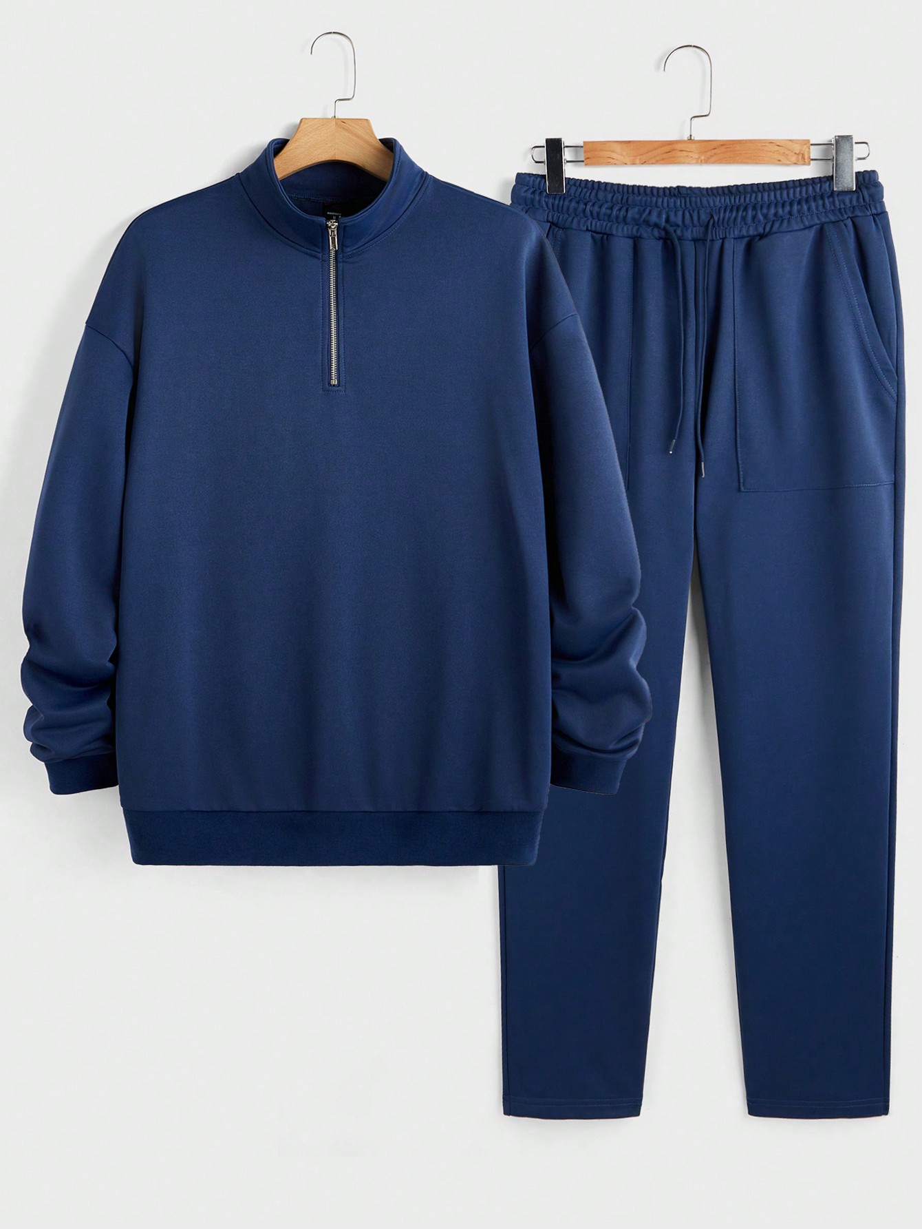 成为第一个“Manfinity KASUA Men??s Solid Color Dropped Shoulder Long Sleeve Half-Placket Sweatshirt And Sweatpants Loose Set, Autumn Winter” 的评价者