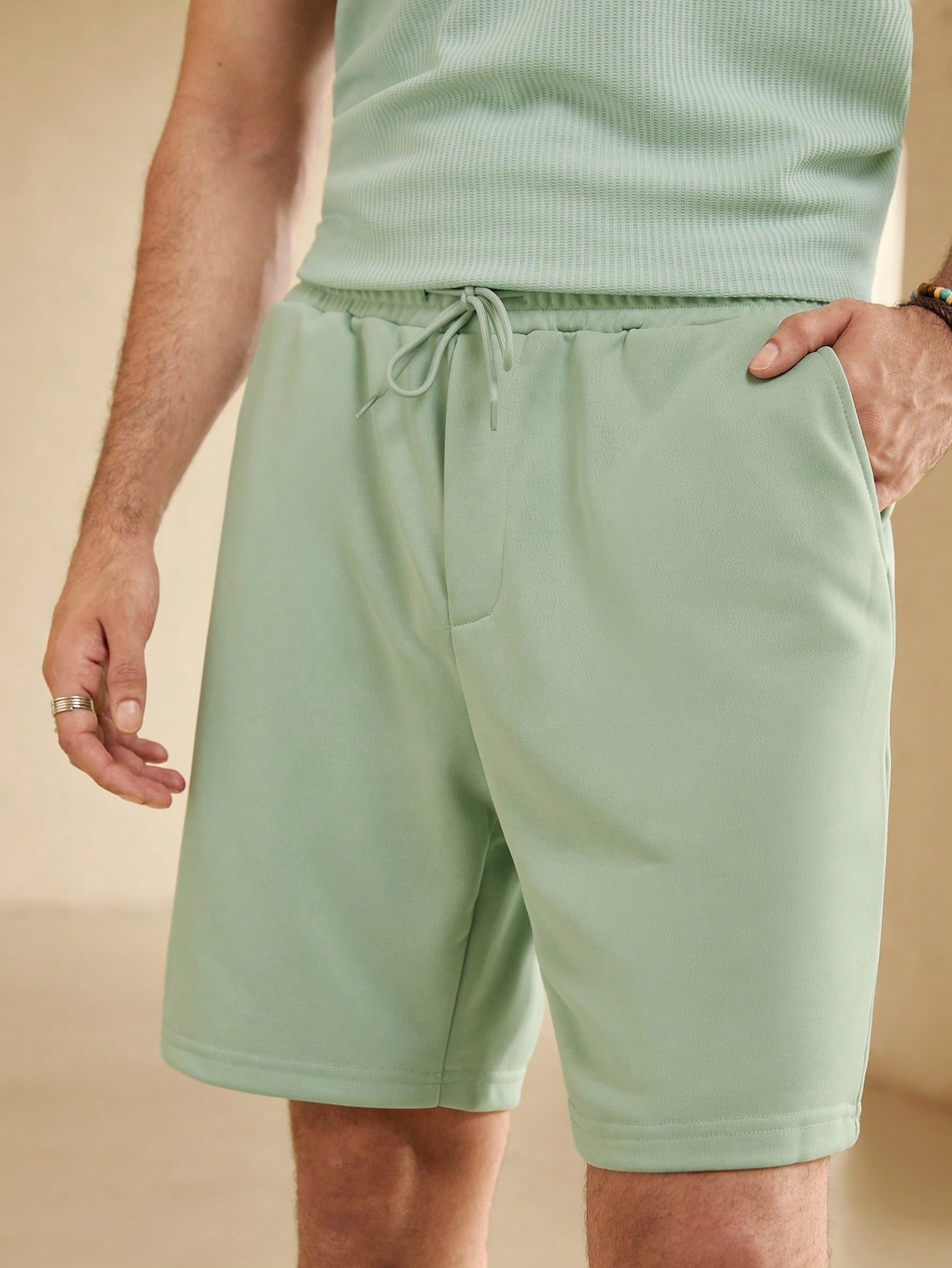 Manfinity KASUA Men??s Summer Solid Color Round Neck Casual Tank Top And Shorts Set