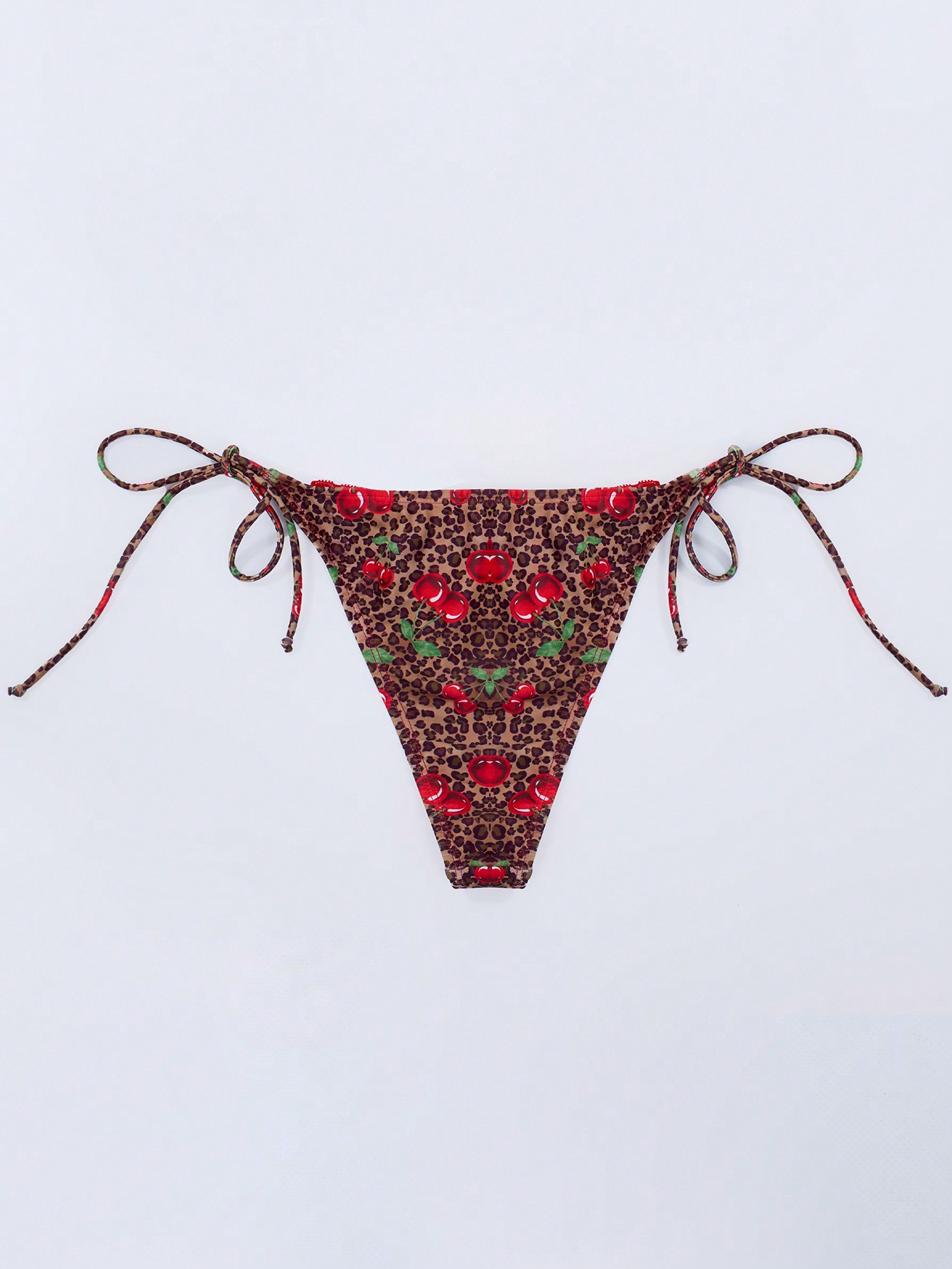 MUSERA Cherry Leopard Ribbon Detail Thong Bikini Bottom